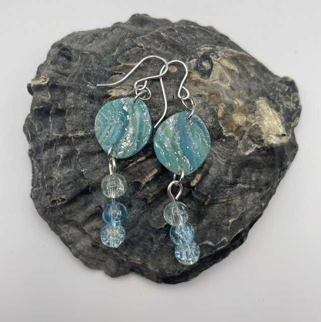 Beautiful beaded drops, with silver foil. 5.5cm drop length with hypoallergenic sterling silver hooks.
