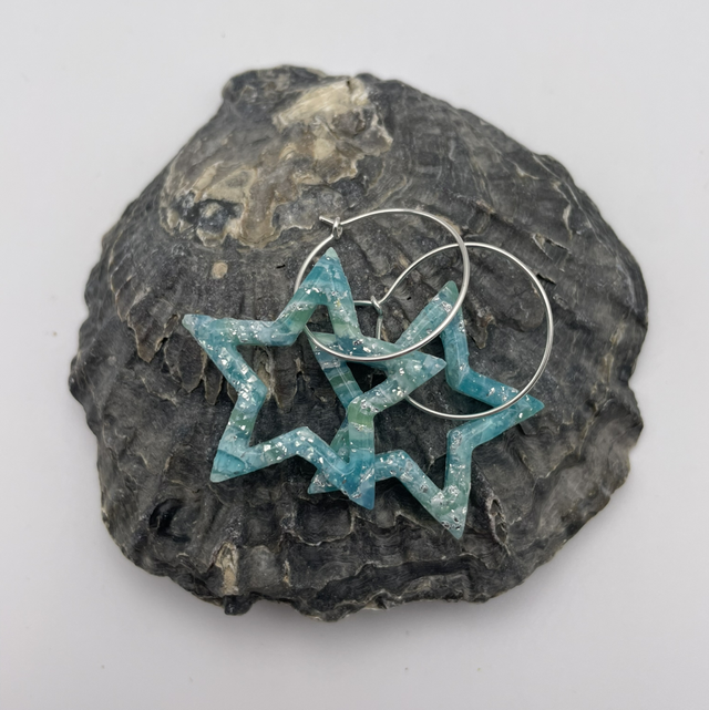 2cm Sterling silver hoops with beautiful 3cm wide star drops. A beautiful addition to any outfit!